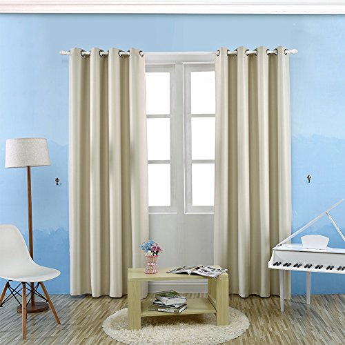 Blackout Room Darkening Curtains Window Drapes Thermal Insulated Block Grommet Sheer Slide Easily Bedroom Treatment 52″W x 84″L (1 Panel) (Ivory)