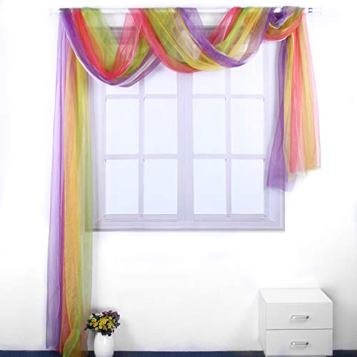 Fulu Bro Rainbow Elegance Window Sheer Voile Scarf 59″ X 216″ for Wedding Arch Home Handrail Decoration (Rainbow)