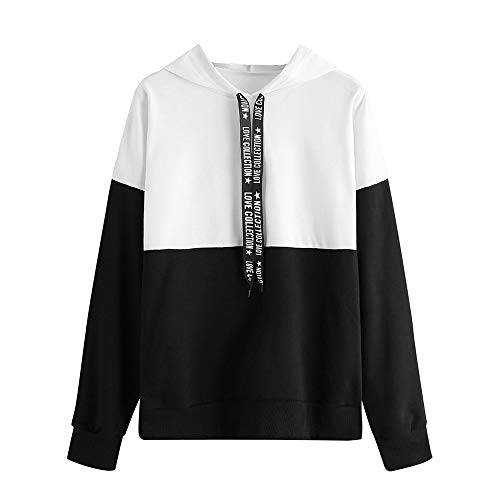 Morecome Womens Long Sleeve Patchwork Hooded Round Neck Fashion Sweatshirt Blouse Tops