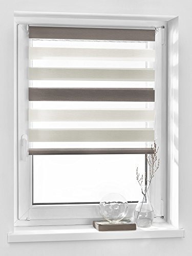 Vidella Double Zebra 3Color Window Roller Blind Fittings 64 cm, White/Beige/Bronze, ZTC 64