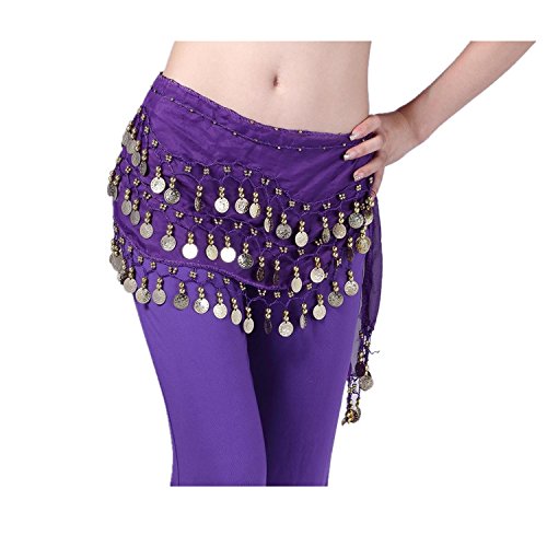 Viskey Fashion Chiffon Belly Dance Waist Chain with Golden Coins in 3-Layers,Purple