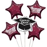 Graduation Foil Balloon Cluster Black and Burgundy