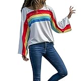 St.Dona_Womens Rainbow Stri... Long Sleeve Shirt Tops Blouse