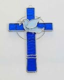 Stained Glass Cross with Dove - Blue