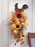 Lighted Rooster & Sunflowers Fall Floral Swag