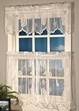 Curtain Chic Seashells Lace Tiers, 36-Inch, Ivory