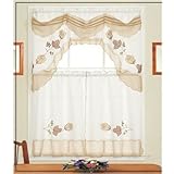 HLC.ME Daleen 3 PC Kitchen Curtain Set (Beige)