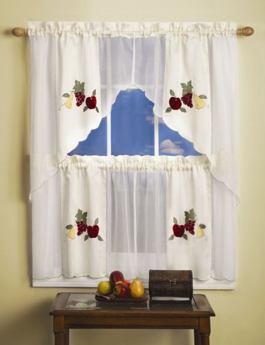 Embellished tier and Swag Set are the perfect finishing décor for you kitchen window. Each set comes with a pair of Tailored Tiers and 1 Swag.