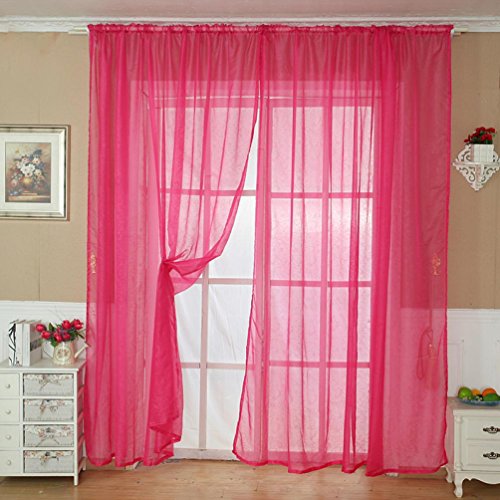 Curtains, Emubody Elegance Tulle Door Window Curtain Drape Panel Sheer Scarf Valance (200X100 cm, PINK)
