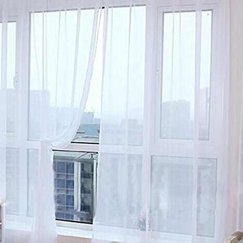 FUA® 2 Piece Solid Pure Color Sheer Window Curtains/drape/panels/treatment size 78.74' x 39.37' (White)