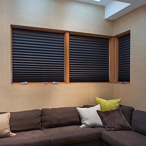 PAPER PLEATED SHADE 36'' x 72'' Window Blind Blackout Light Block Cordless Black