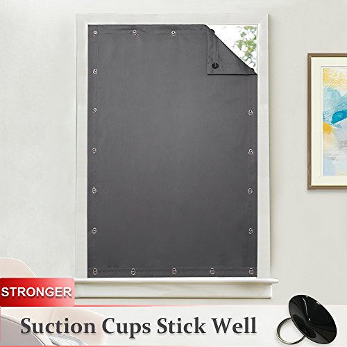 PONY DANCE Nursery Portable Blind - Gray Blackout Curtain Panels with Suction Cups Light Block & Easy Install for Home Travel Drapes Temporary, 51" W by 78" L, Grey, Single Piece