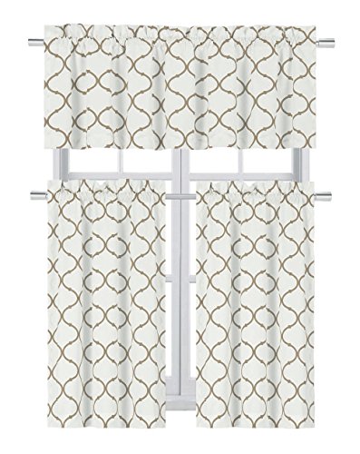 Regal Home Collections Shabby Trellis Kitchen Curtain Tier & Valance Set – Assorted Colors (Linen)