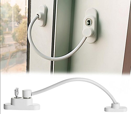 Window Door Restrictor Cable Security Lock for Baby Toddler Children Kid Safety (1 Pcs, White)