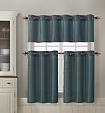 Teal 3 Piece Kitchen Curtai...lance, 2 Tiers, Metal Grommets