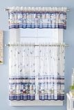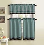 3 Piece Kitchen Curtain Set...iers, , (Steel Blue and Brown)