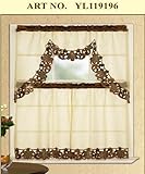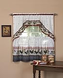 3 Piece Taupe with Brown Em...cafe Curtain Tier and Swag Set