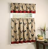 HLC.ME Rooster Pullet 3 Piece Kitchen Curtain Set