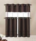 3 Piece Solid Color Kitchen...nd 1 Valance (Chocolate Brown)