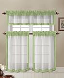 3 Piece Kitchen Curtain Win...é Lace Finished Bottom Accents