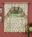 3 Piece Kitchen Window Curt...: Beige with Sage Green Border