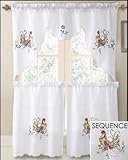 Rooster Sequence & Embroidery Kitchen Curtain Set (White)